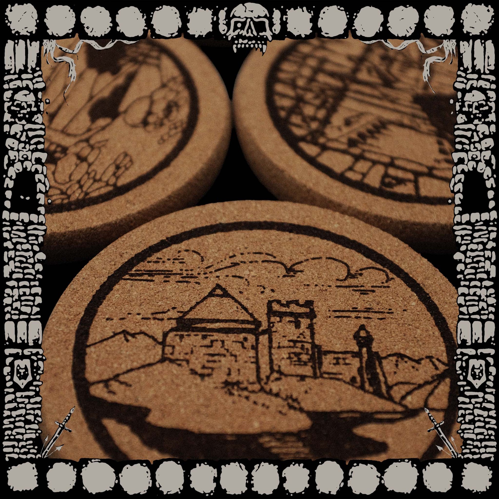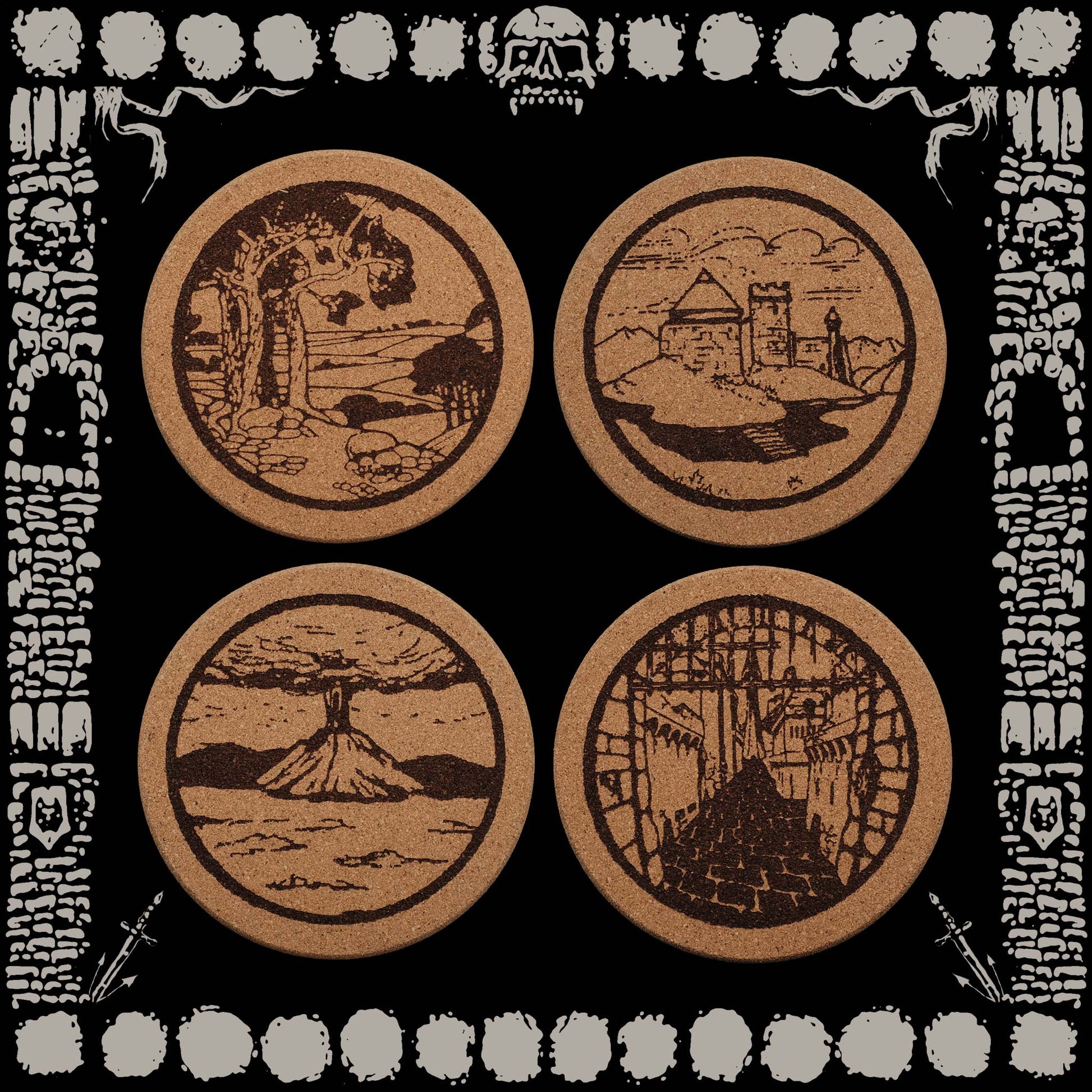 "TERRENE" 4 ENGRAVED CORK COASTER SET